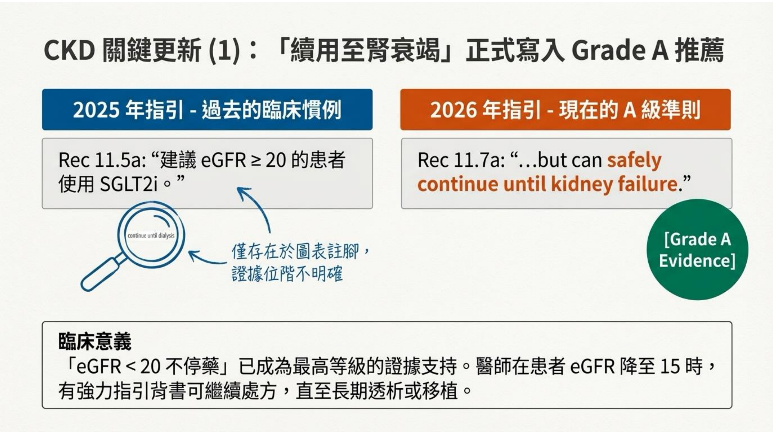 3: CKD 關鍵更新 (1)——「續用至腎衰竭」寫入 Grade A 推薦