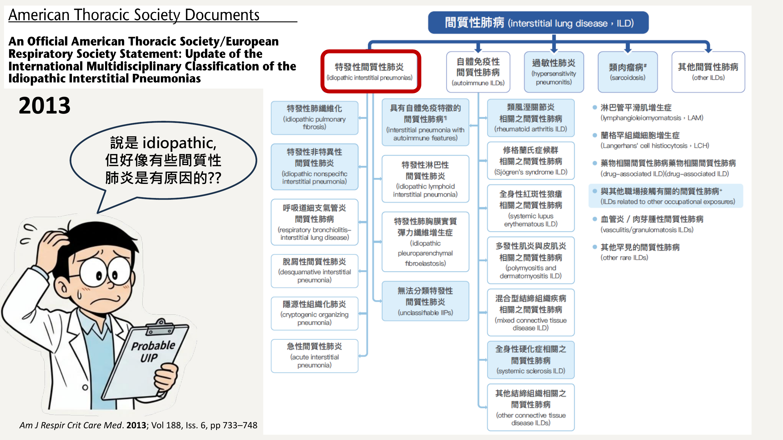自 2013 年後,ILD 分類在 2024/2025 年迎來重大更新(ATS/ERS update)。這次改變是為了讓分類更符合臨床與病理機轉。