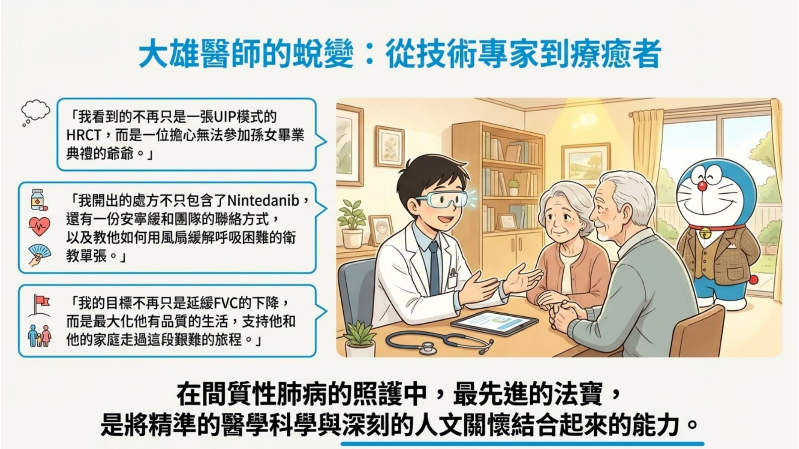 治療 ILD 不僅是關注 FVC 數值,更要由「技術專家」轉變為「療癒者」。