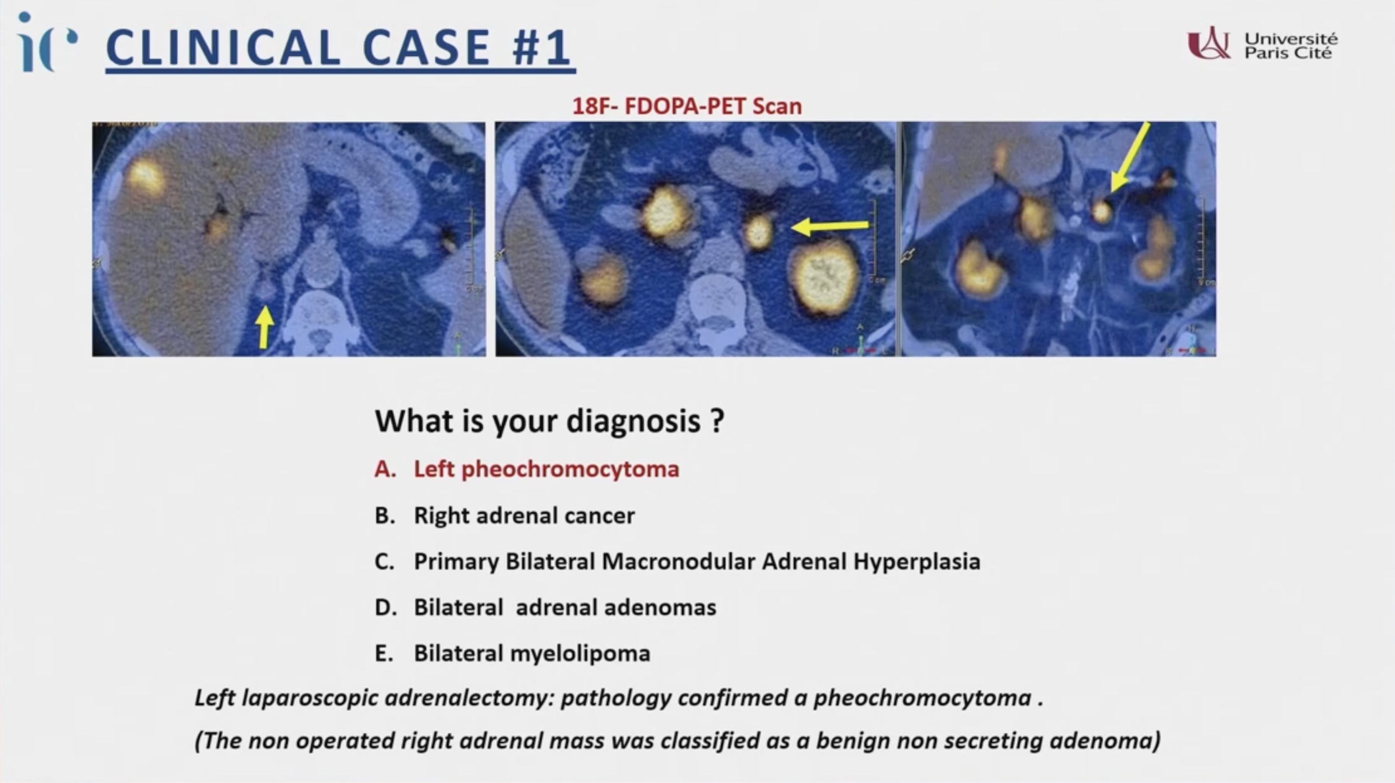 - 最終診斷: 左側嗜鉻細胞瘤(Pheochromocytoma),右側為無功能腺瘤。
