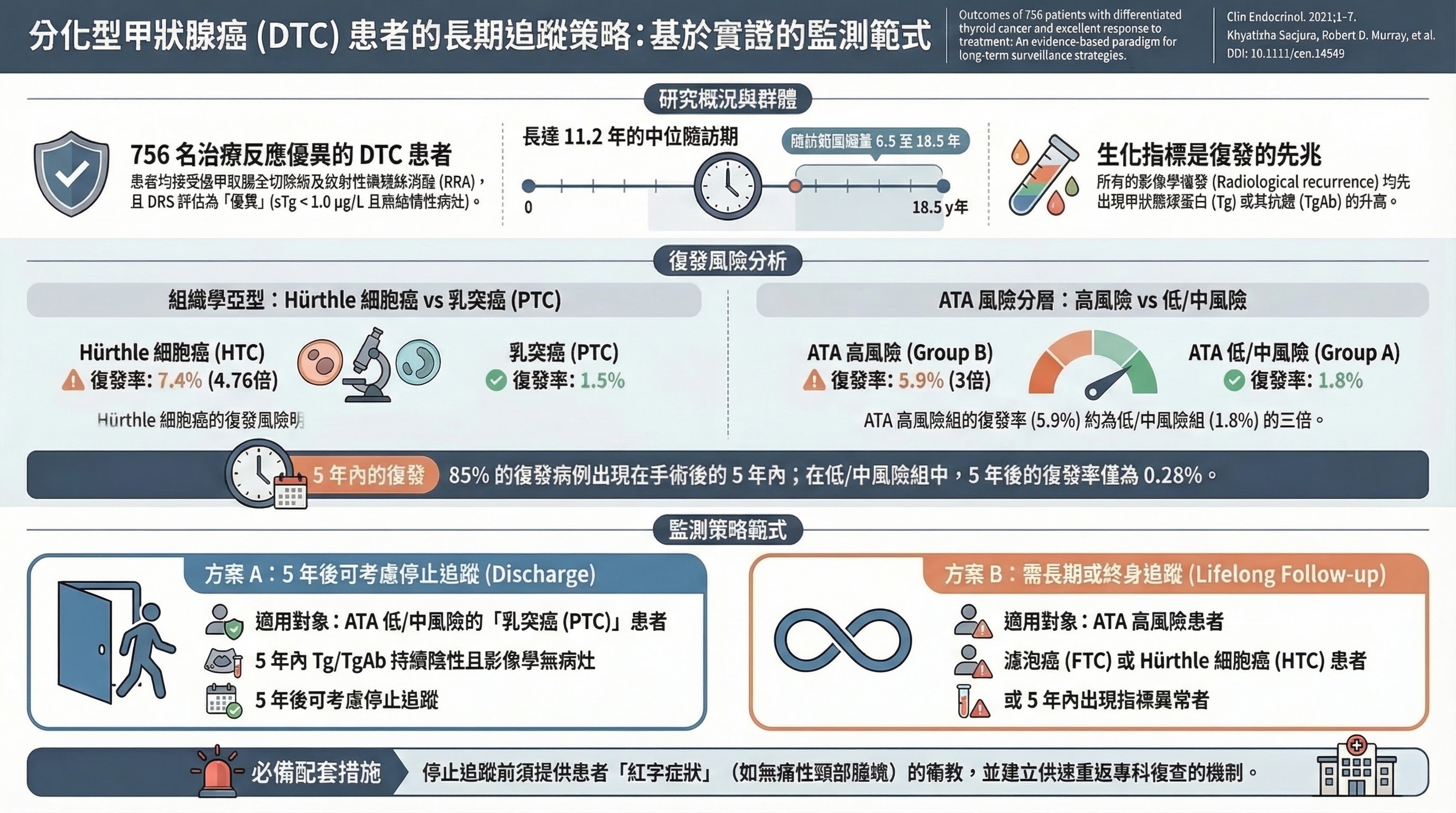 - 主要限制: 3 年追蹤(此次報告)相對短;open-label;在 TT 背景下進行(不適用於 lobectomy);複合終點含生物學事件