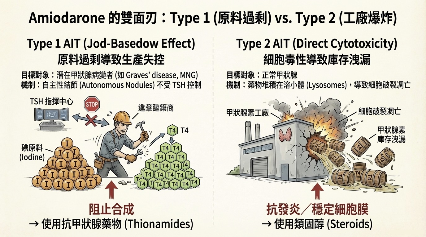 同樣是 Amiodarone 造成的甲狀腺毒症,為什麼有人是 Type 1,有人是 Type 2?這不是隨機的。