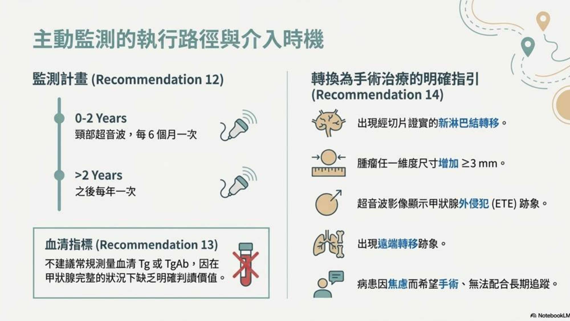 - 前兩年:每 6 個月做一次頸部超音波。