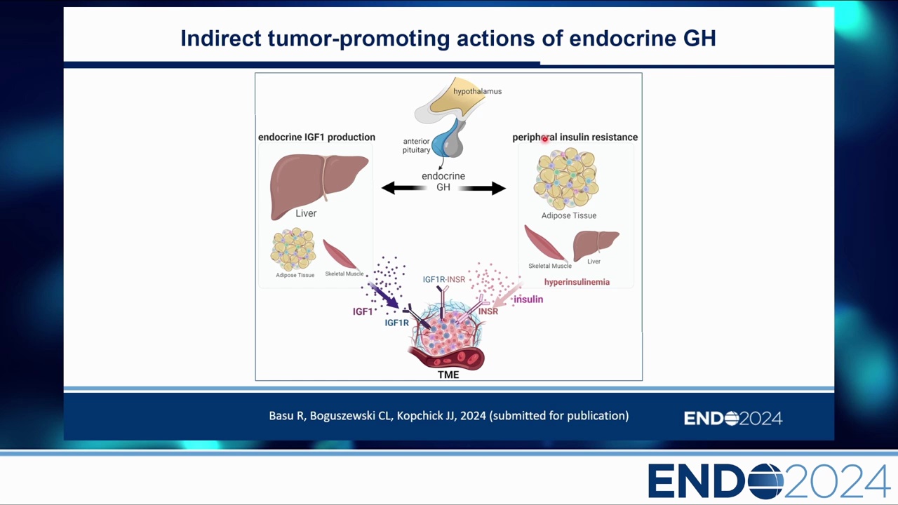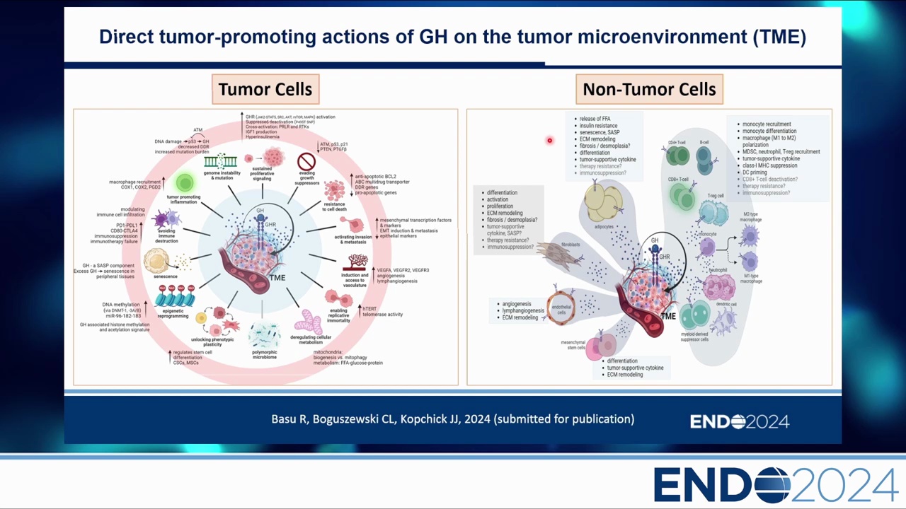 - 目前認為,自體/旁分泌的 GH 遠比內分泌 GH 更可能參與致癌過程。