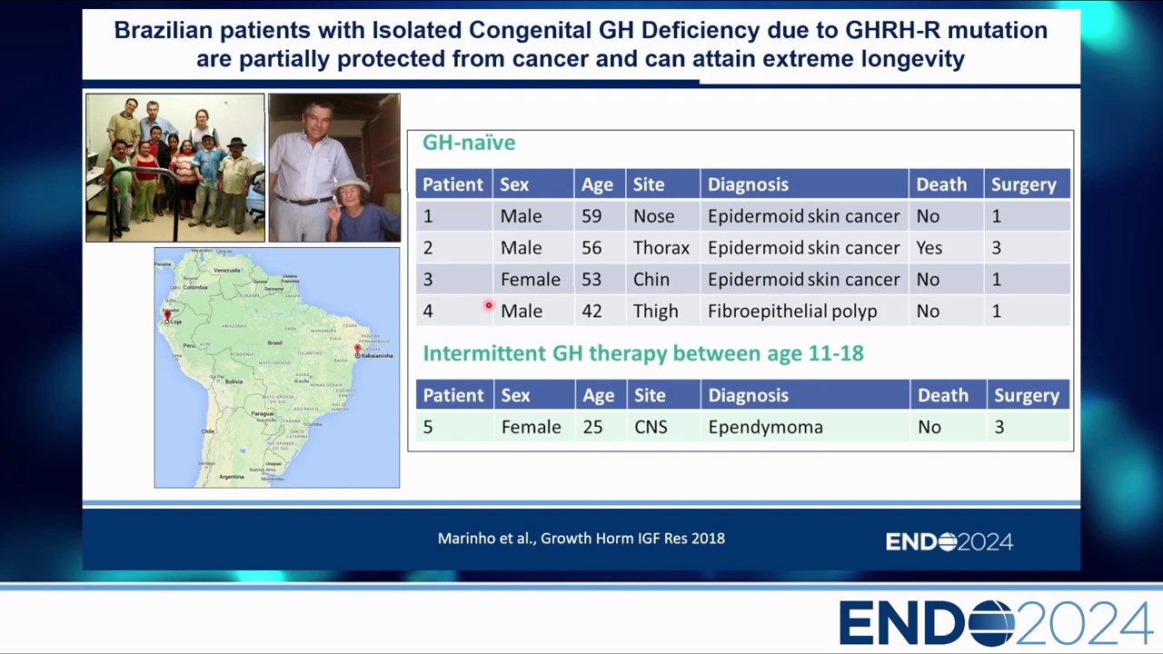 由 Guevara-Aguirre 醫師追蹤的厄瓜多爾 Loja 地區 Laron 綜合症(GHR 突變,GH 抗性)隊列研究顯示: