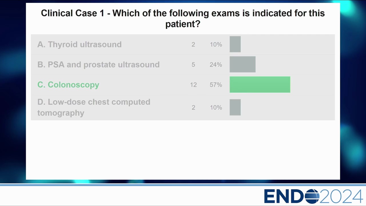 - 臨床實踐:投票結果分歧,約 41% 醫師會在診斷時對所有病例做大腸鏡,50% 則依循一般人群指引。
