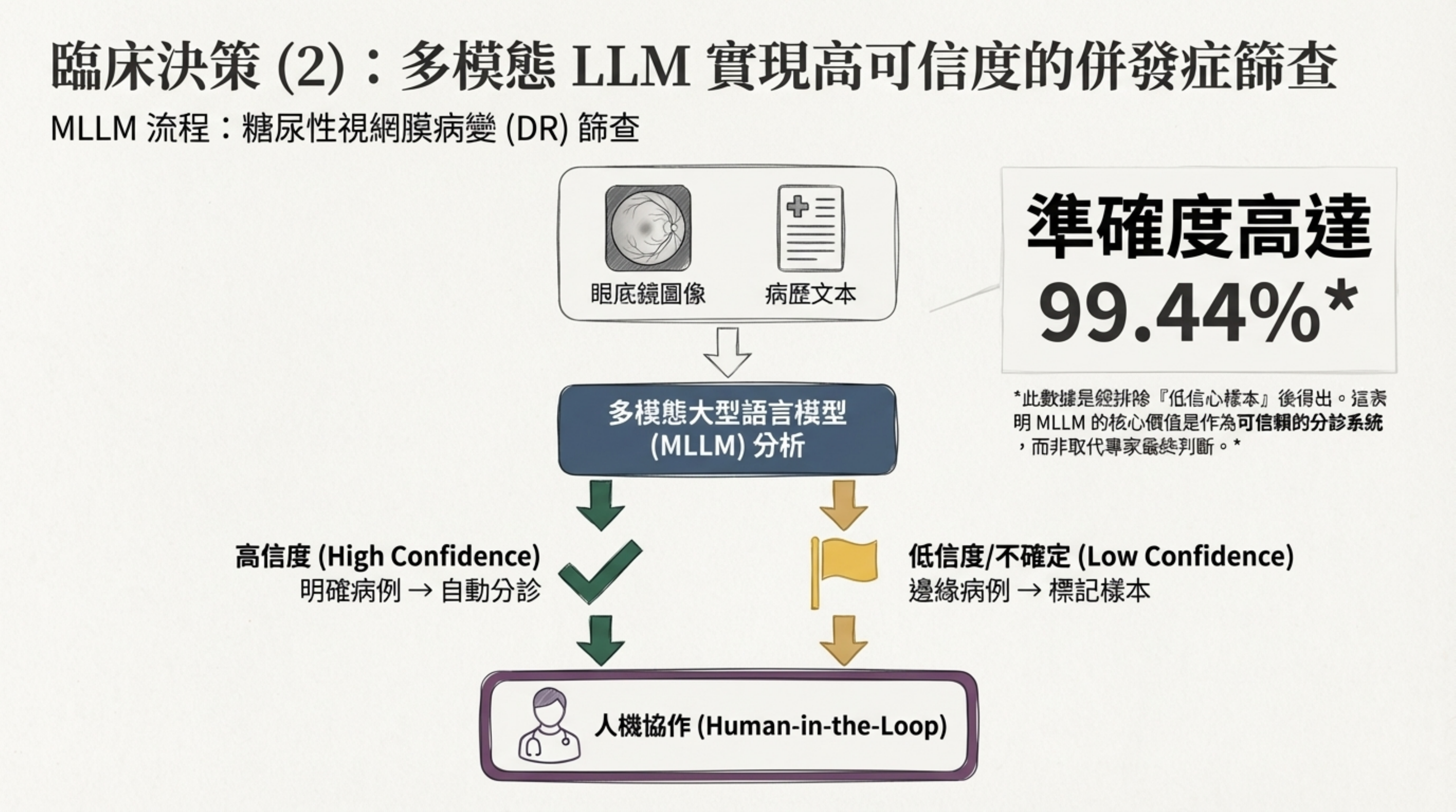 Slide 10: 臨床決策 (2):多模態 LLM 實現高可信度的併發症篩查