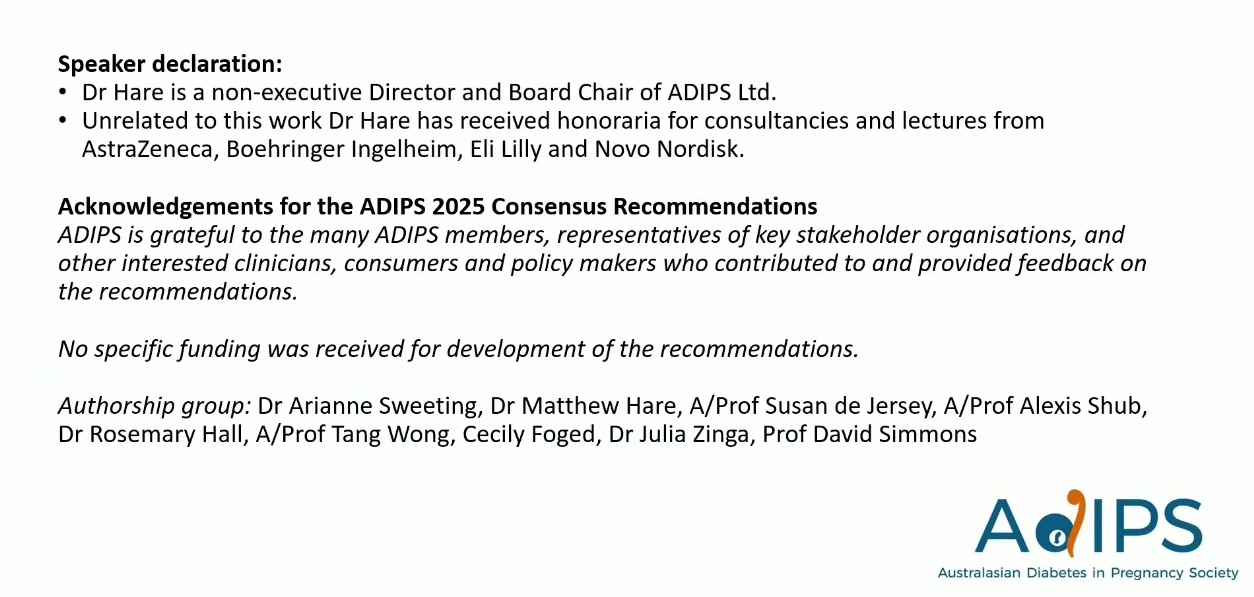 演講者:Dr. Matthew Hare (Endocrinologist, President of Australasian Diabetes in Pregnancy Society - ADIPS)