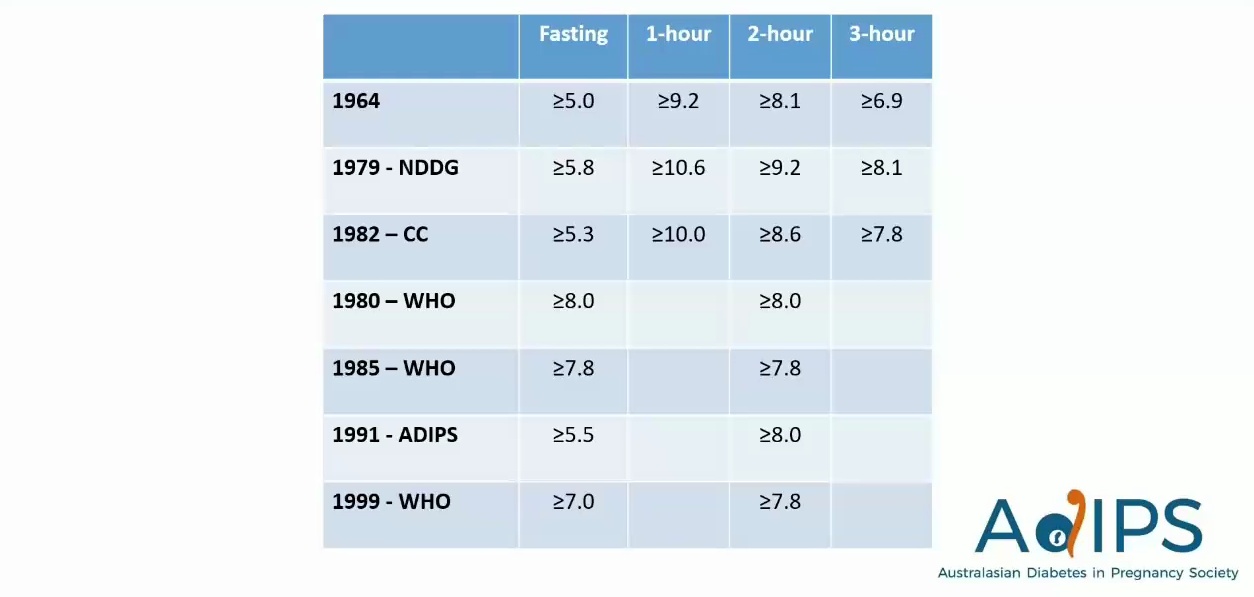 ADIPS 在幾年前開始更新妊娠糖尿病(GDM)篩檢與診斷建議的過程,這項工作在 2020 年變得更加緊迫,因為那是 O'Sullivan 和 Mahan 發布首個 GDM 標準的 60 週年。這是一個重新點燃關於「什麼是 GDM」爭論的時刻。