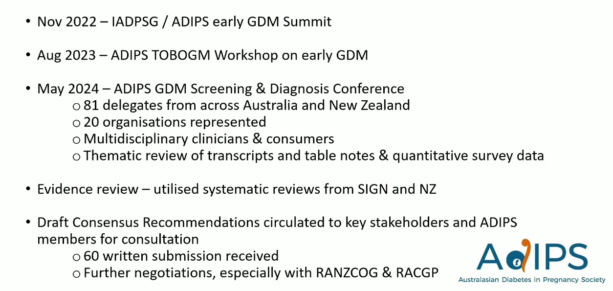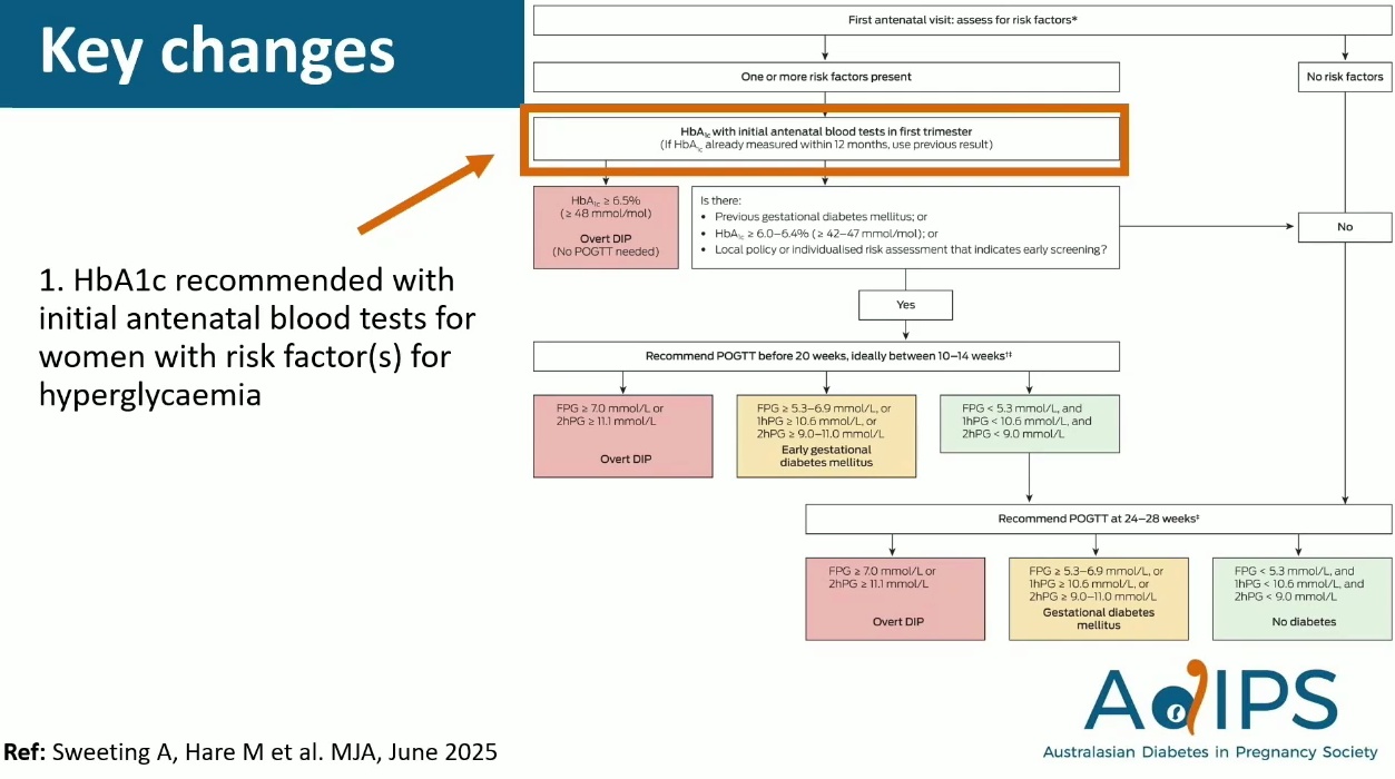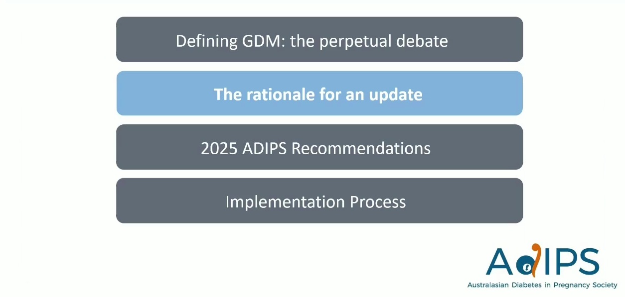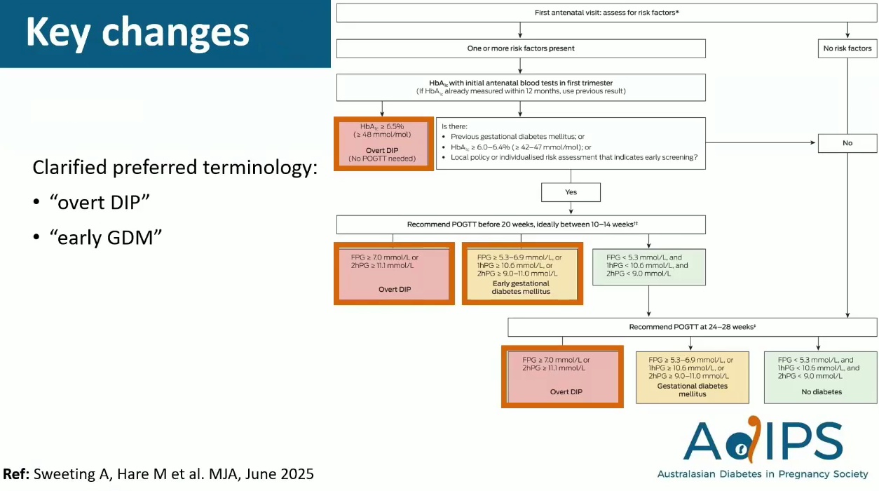 - ADIPS 成為繼弗拉芒 (Flemish) 團隊後,首批引入明確早期 GDM 診斷標準的指引,並採用 HAPO OR 2.0 標準。