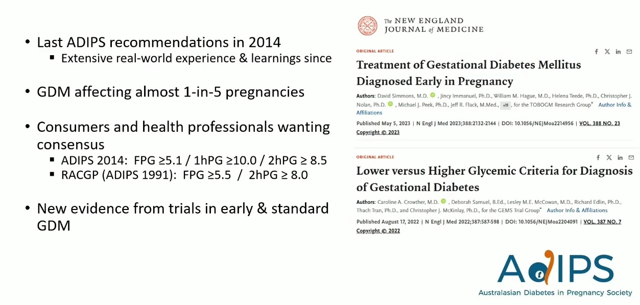 澳洲自 2014 年以來未更新指引,經過十年的 IADPSG 標準使用經驗,ADIPS 決定進行更新,主要基於以下理由: