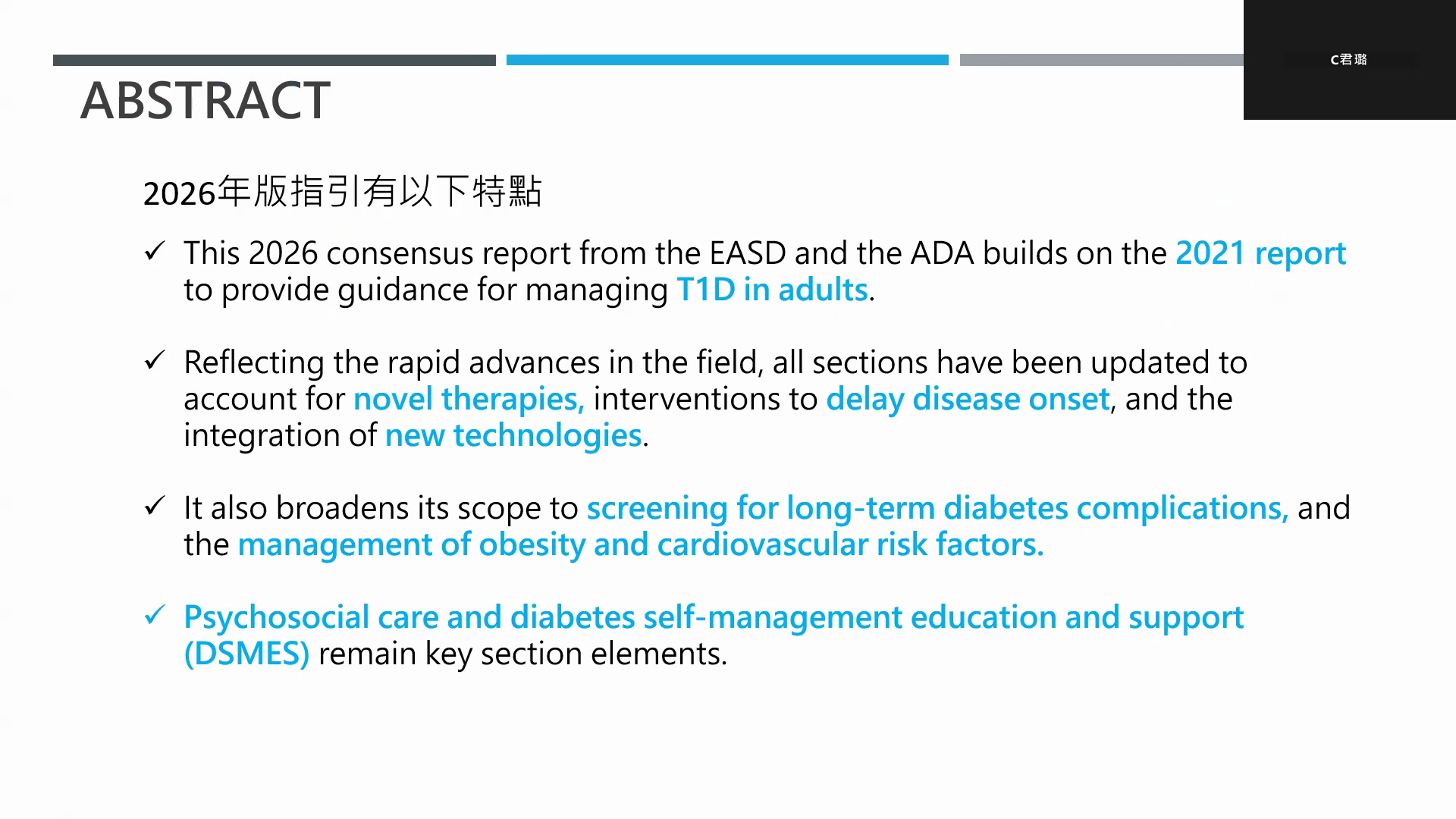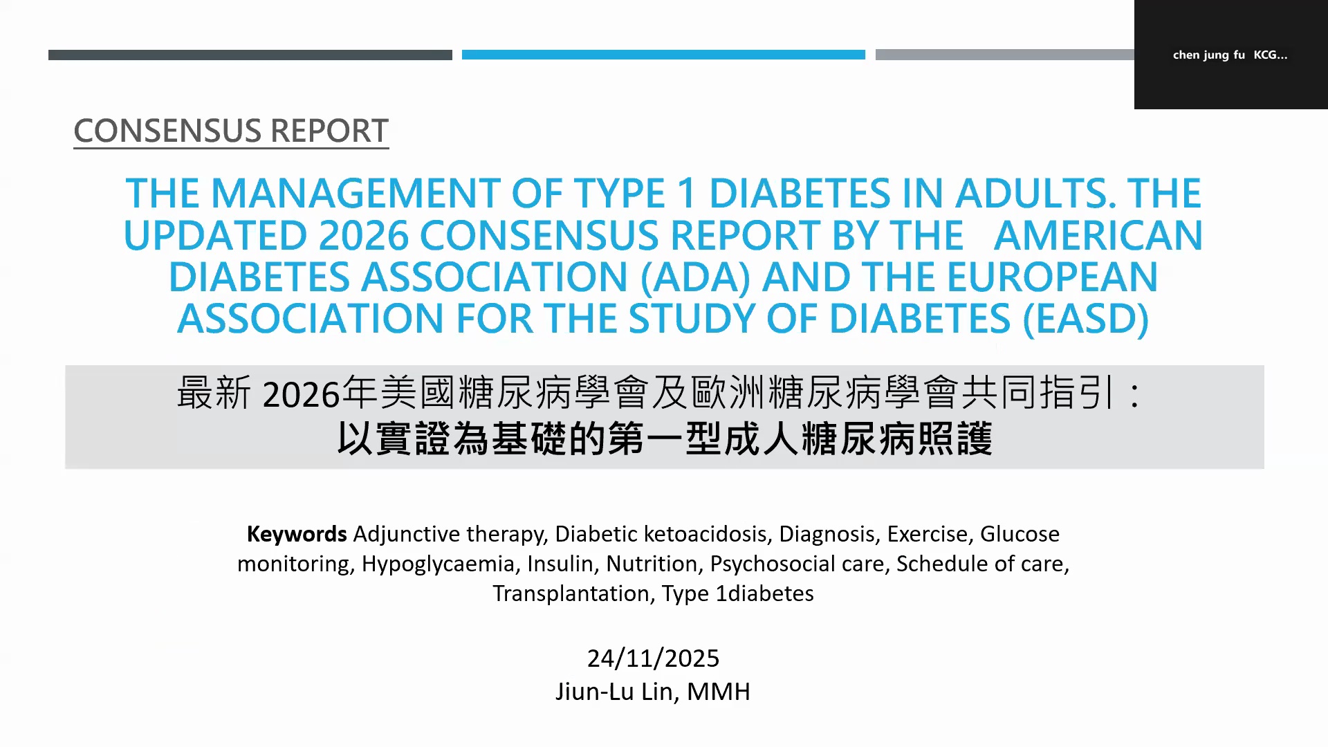 主題:The Management of Type 1 Diabetes in Adults (2026 Update Draft)