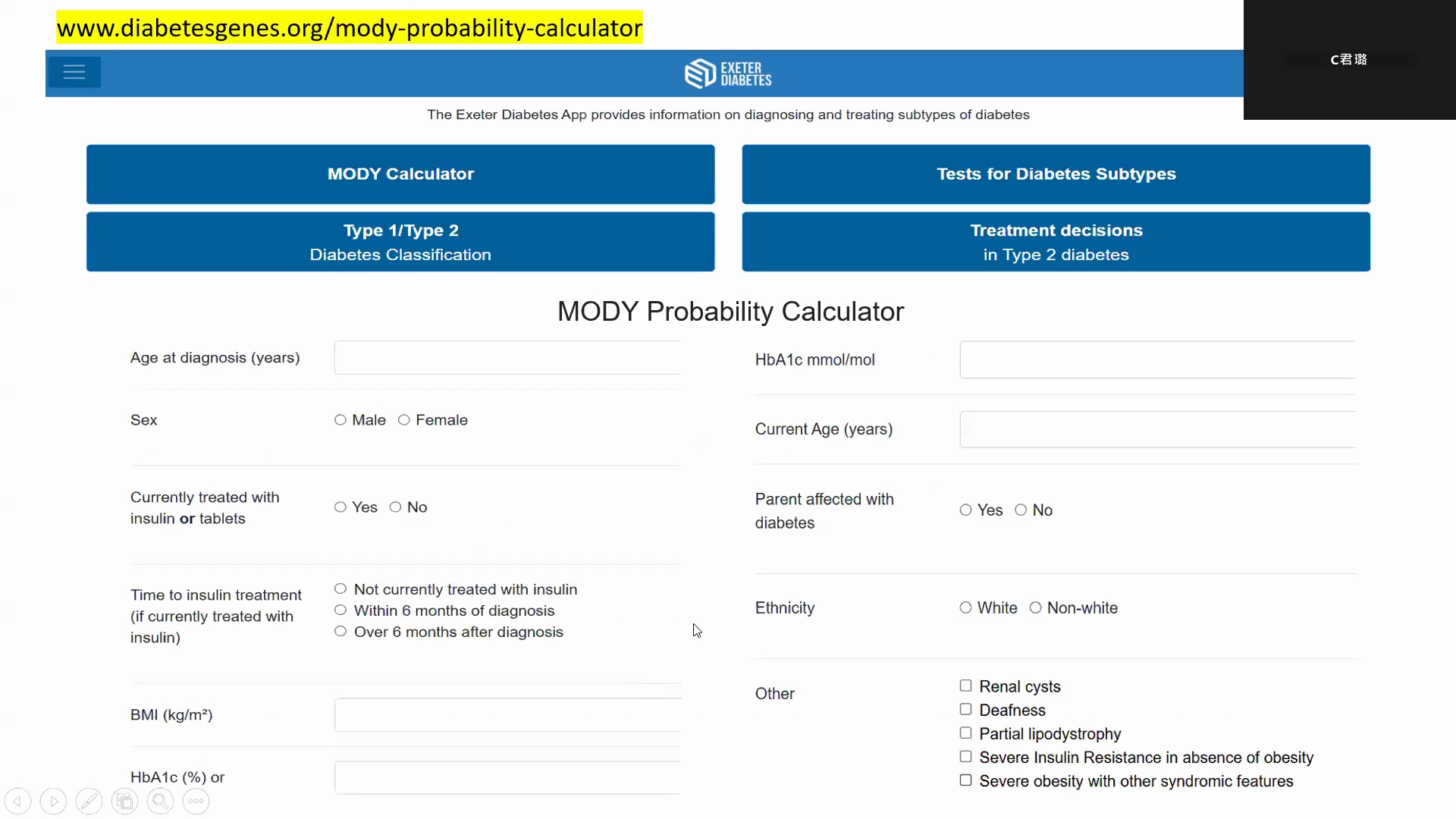 - 工具:可利用 Exeter Diabetes App 的機率計算器輔助診斷。
