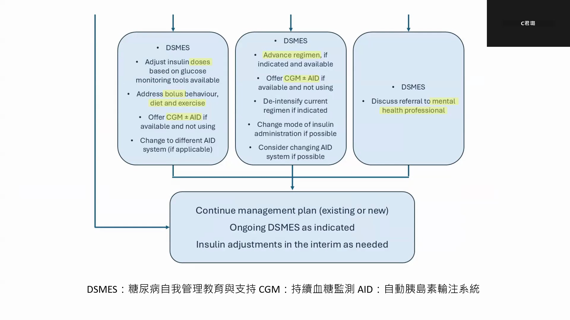 - 新科技與藥物整合:如何將新科技(如 AID, CGM)及新興療法(Emerging therapy)融入日常照護。