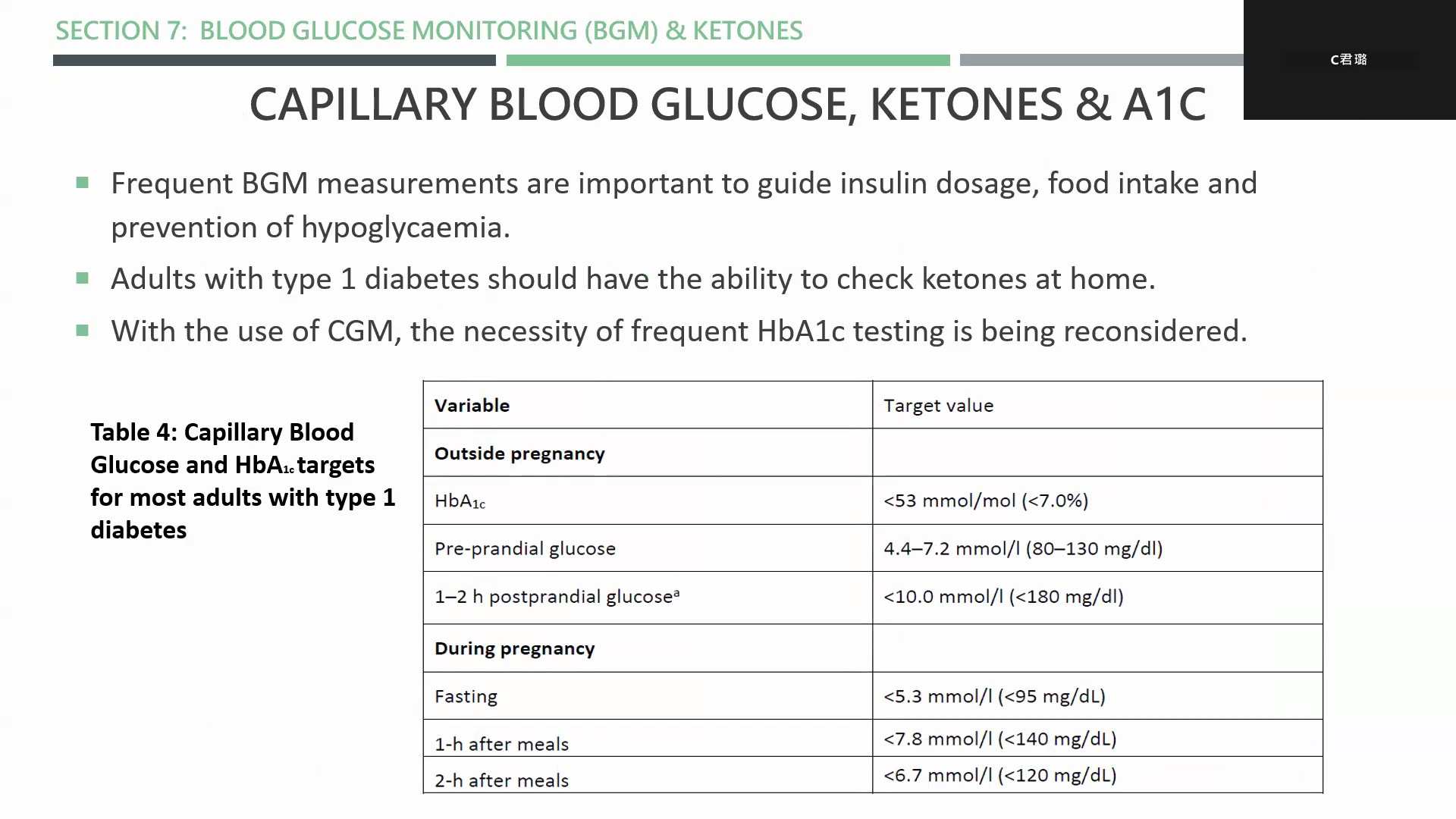 - 指尖血(BGM)與尿酮:即便有 CGM,病人仍需具備測指尖血(校正或CGM不準時)與測血酮/尿酮的能力。