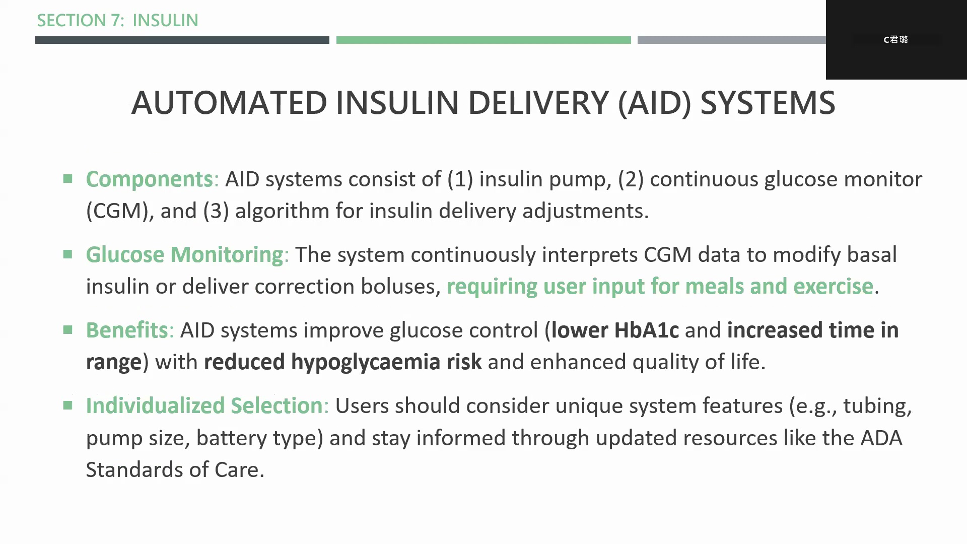 - AID 優勢:結合 Pump 與 CGM,透過演算法自動調整基礎率與校正劑量。