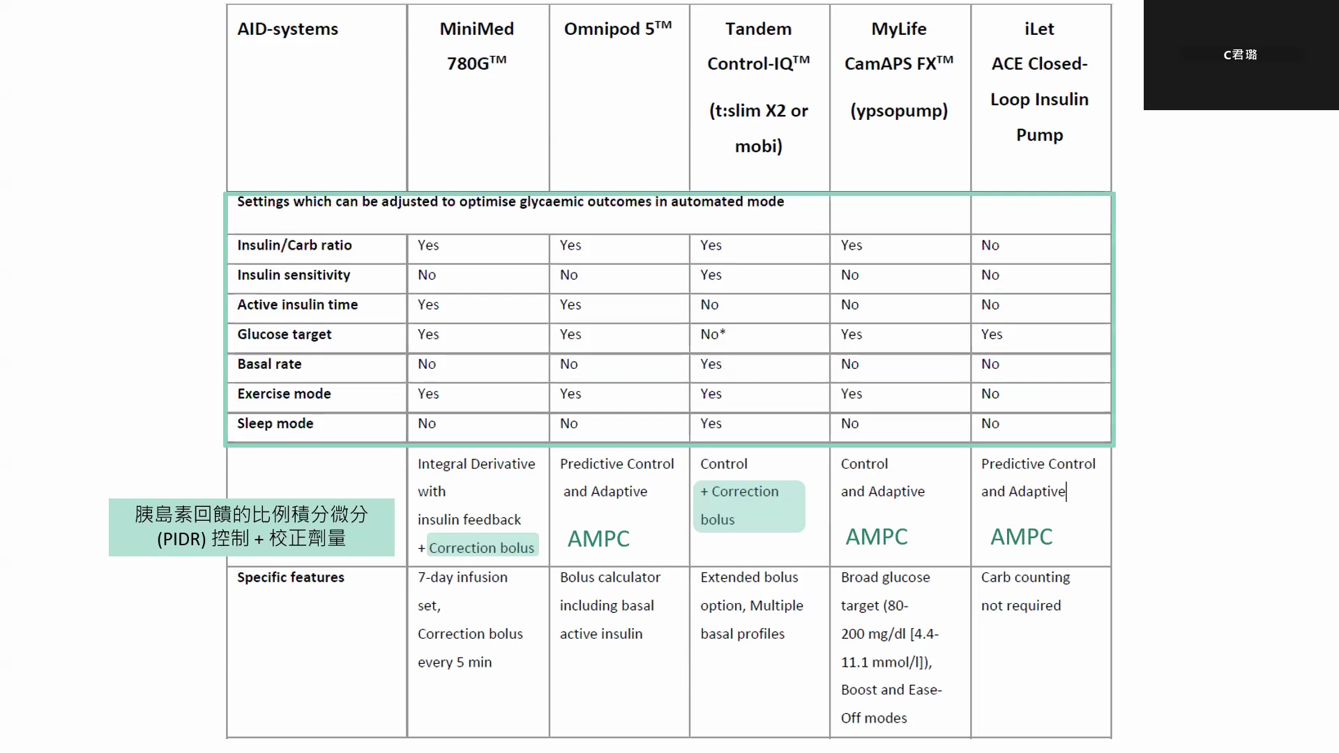 - Control-IQ (Tandem)、CamAPS FX:採用 MPC(模型預測控制)演算法。