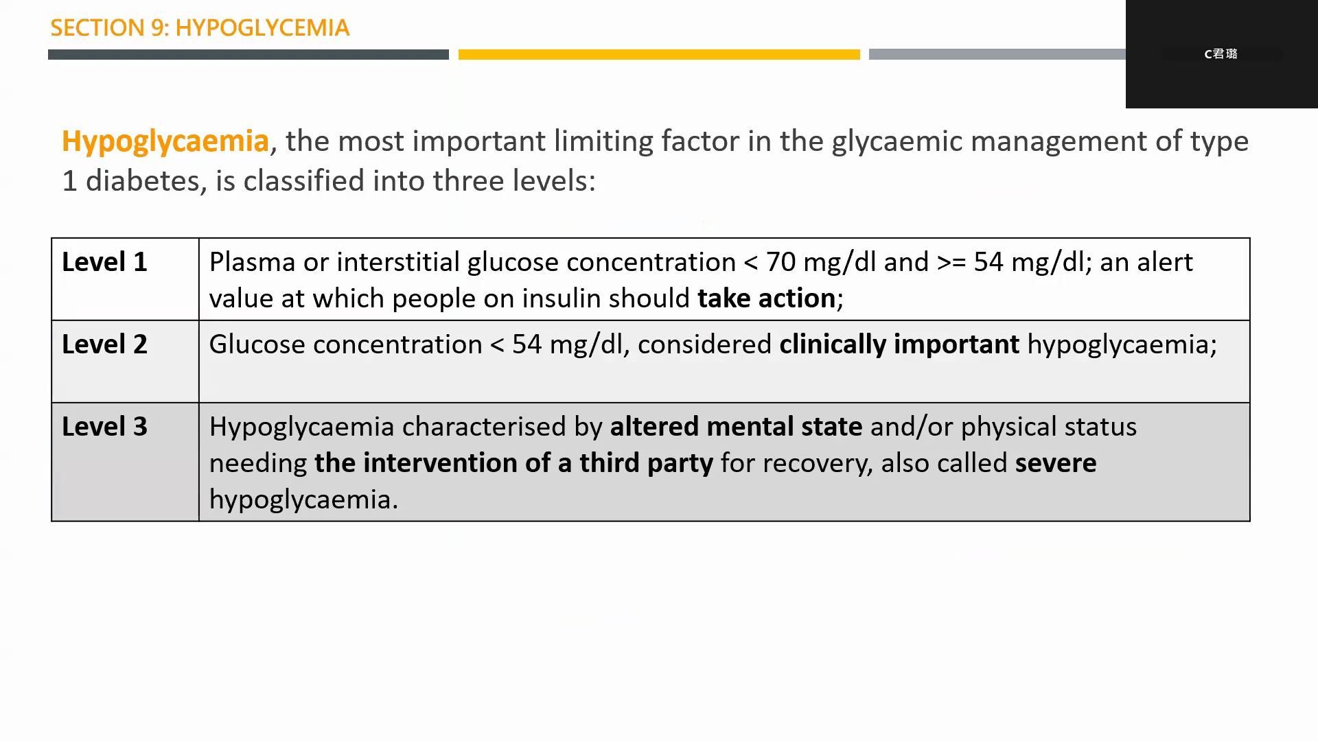 - Level 3:嚴重低血糖,需他人協助恢復意識。