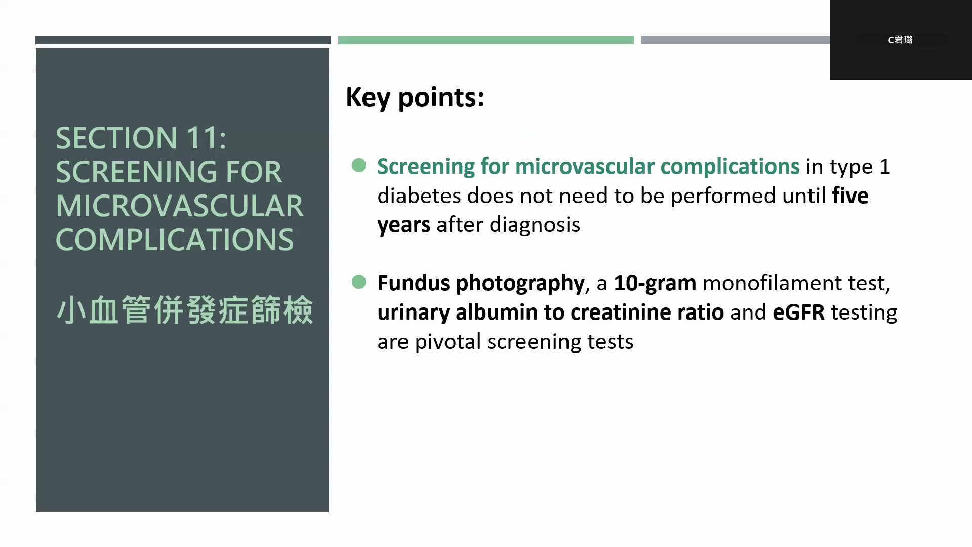 - 篩檢時機:診斷後 5 年 開始篩檢(因 T1D 發病時間點明確),之後每年追蹤。