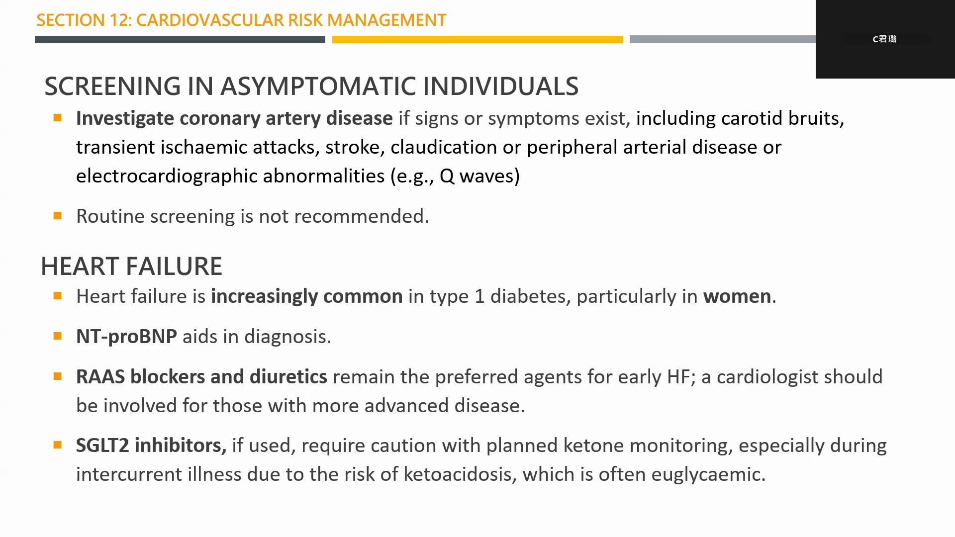 - 心衰竭:T1D 女性心衰竭風險增加,可用 NT-proBNP 輔助診斷。