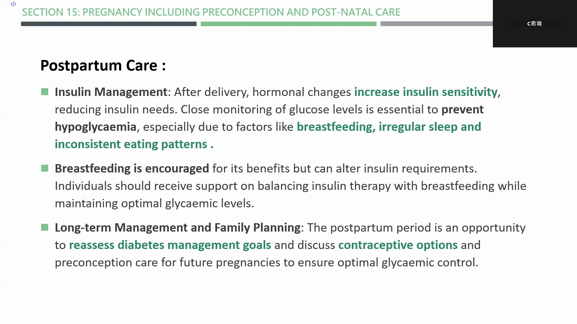 - 產後:鼓勵哺乳(可降低胰島素需求),需預防產後因荷爾蒙改變及哺乳造成的低血糖。