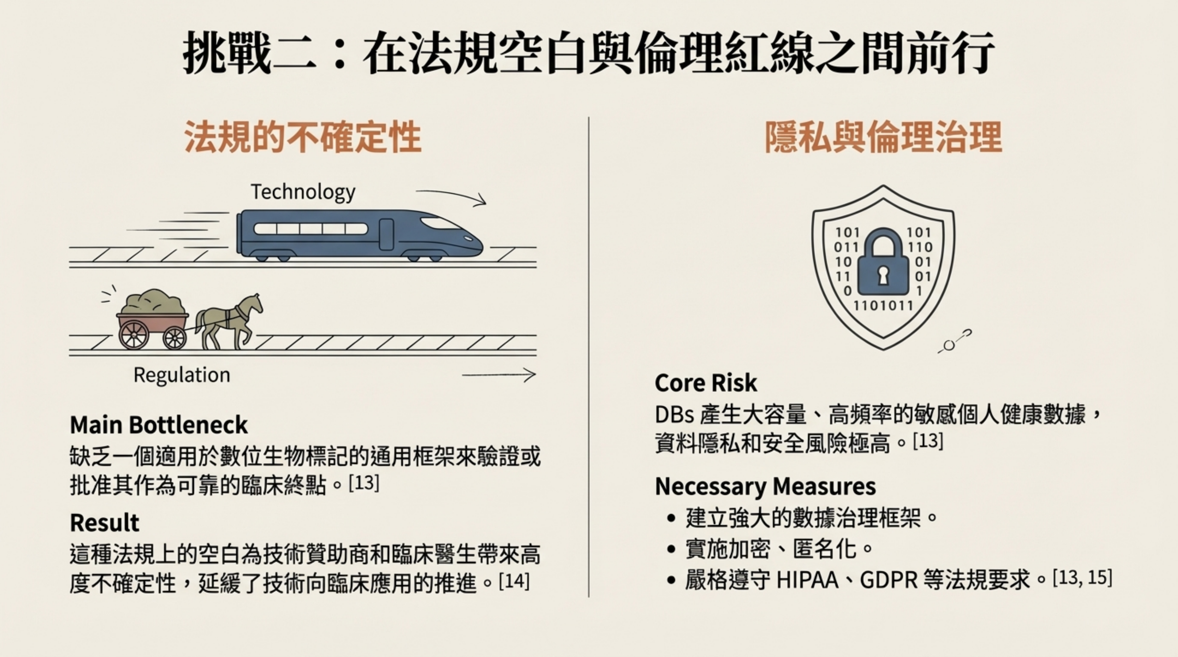 - 視覺核心:高鐵(科技)與馬車(法規)的速度對比圖,以及資安盾牌。