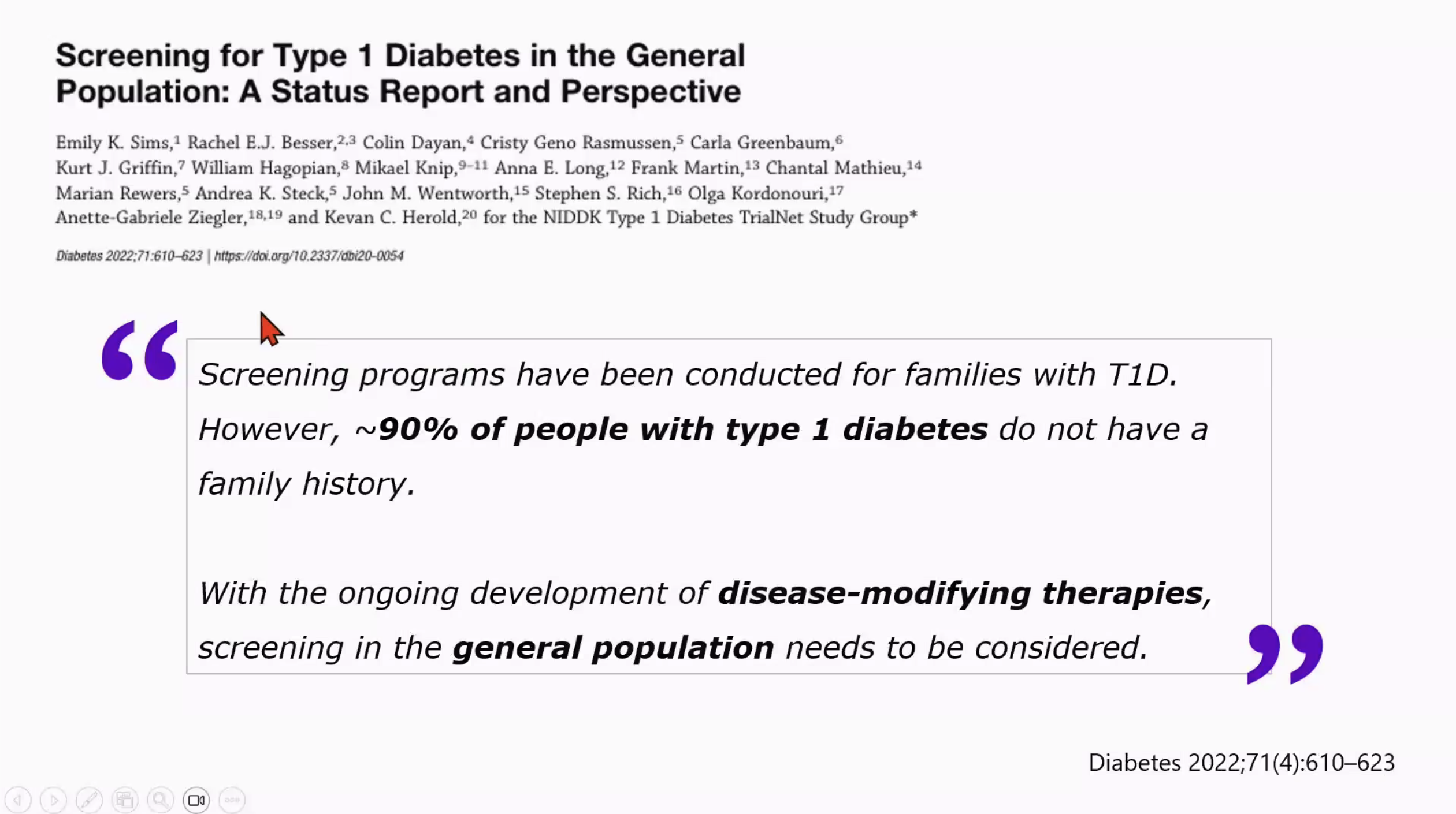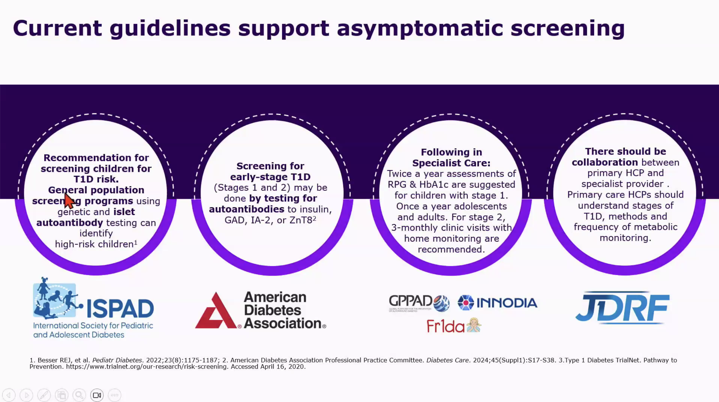 - ISPAD:建議對一般大眾進行篩檢(包括 Islet autoantibodies 和 Genetic risk)。