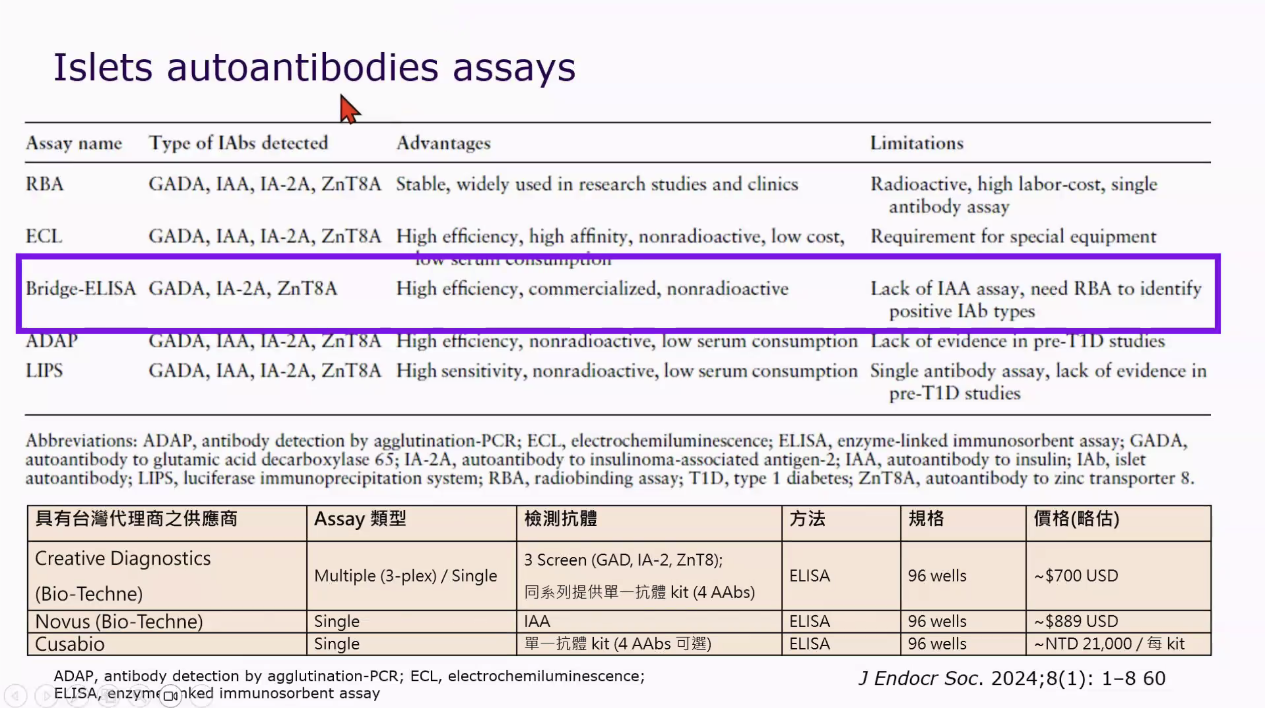 - 日本 (2024):建議在診斷時務必做抗體檢測,並開始進行 Preclinical 的研究計畫(PREP-T1D)。